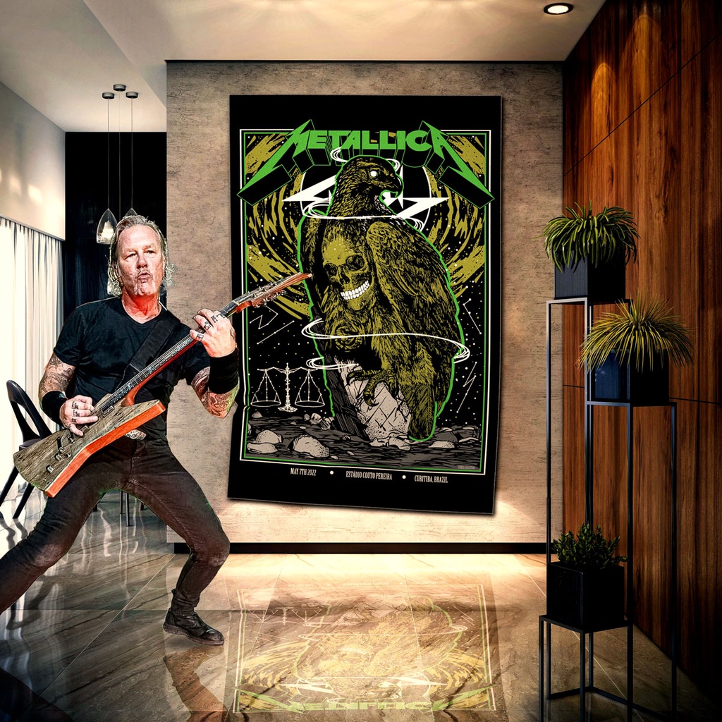 Bandeira Metallica Tour Curitiba Brasil 2023 Quadro de Parede Banner Poster Sem Moldura Personalizado Banda de Rock Mod 0008