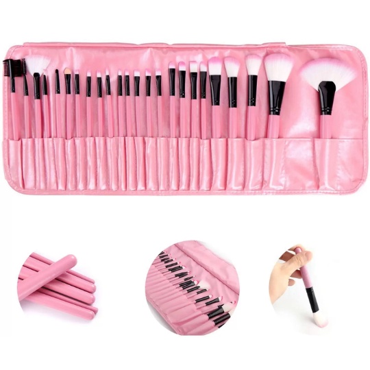 Kit 24 Pincéis De Maquiagem Profissional Com Estojo