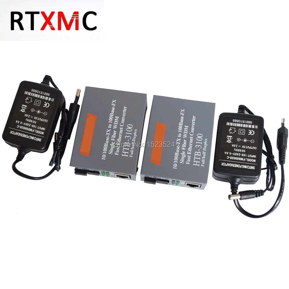 1Pairs Conversor De Mídia De Fibra Óptica Transceptor Htb-3100 20 km Sc-10 / 100 M Single-Mode De Fibra Ótica Única