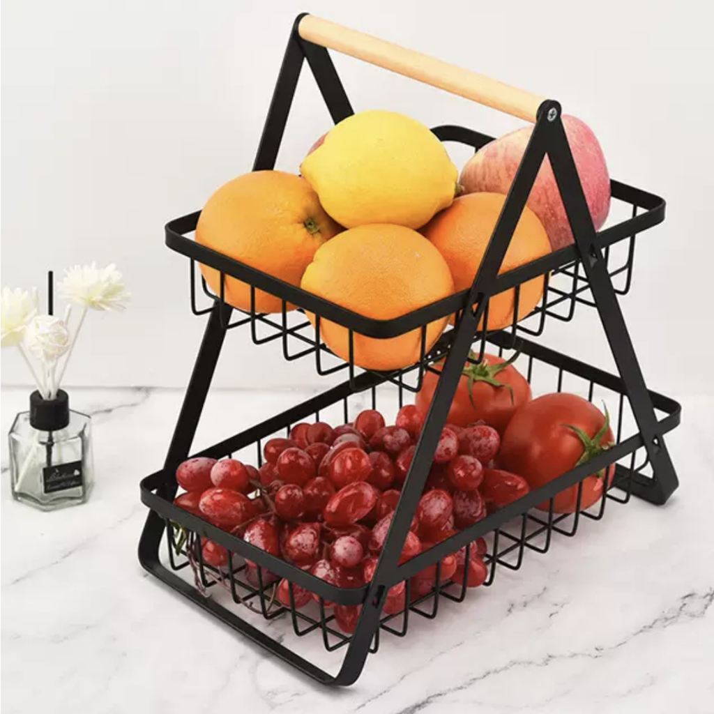 Fruteira de Mesa com 2 Andares Dupla Cesto de Frutas Aramado Metal Organizador Frutas Legumes