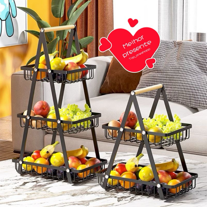 Cesto Fruteira organizador De Mesa Premium Bancada Quadrada Em Metal Moderna E Resistente 2 Andarl Extra Forte