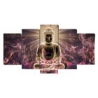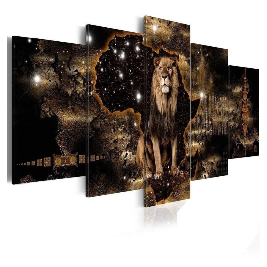 Quadro Decorativo Mosaico 5 Peças Leão Animal Fundo Abstrato