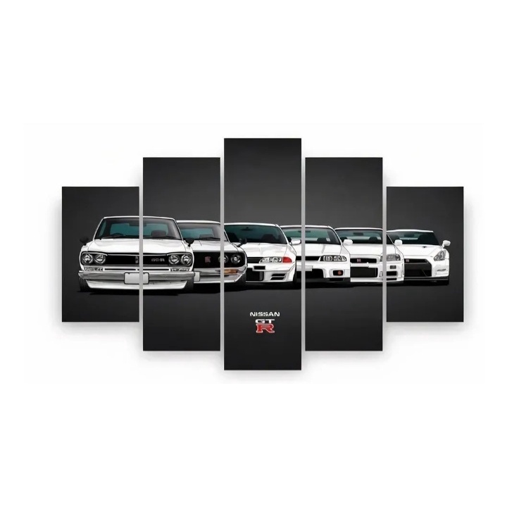 Quadro Mosaico 5 Peças Decorativo Carros em Desenho/Nissan GTR/Carros Esportivos