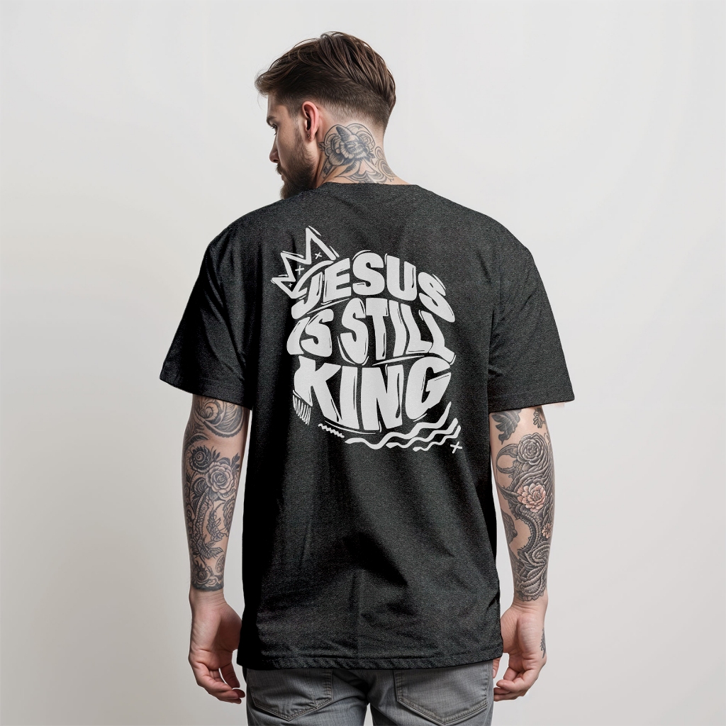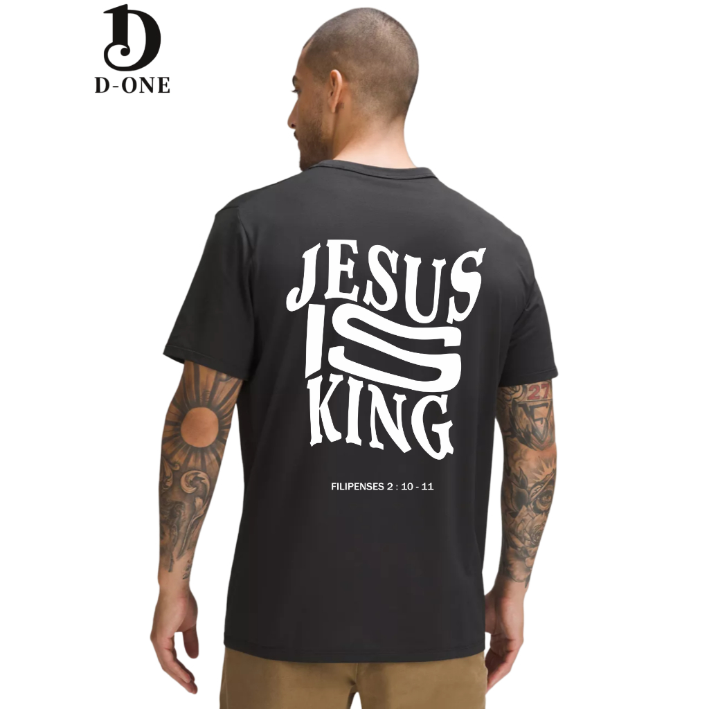 CAMISETA MASCULINA EVANGELICA JESUS IS KING ESTAMPA NAS COSTAS E FRENTE UNISSEX