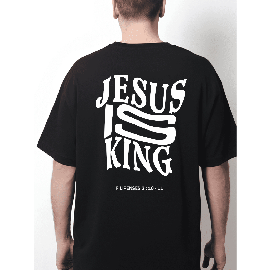 Camiseta Oversized Masculina Gospel "Jesus is King" estampa frente e costas 100% Algodão