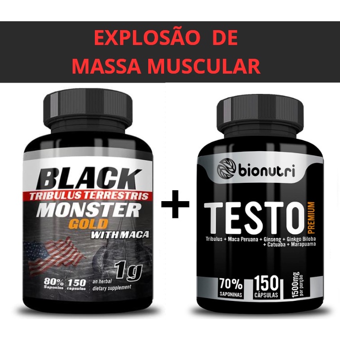 Kit Black Monster + Testo Premium 150 Cápsulas - Super Kit Ganho De Massa