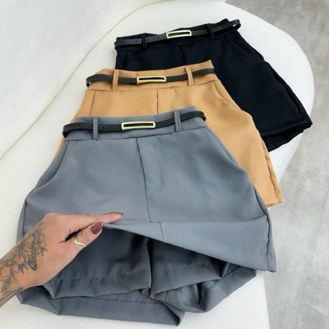 Short Feminino Alfaiataria Social com Cinto cintura alta com bolso tendência Promoção