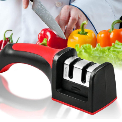 Afiador Amolador De Facas Em Aço Inox Com 3 Borda Profissional Base Emborrachado
