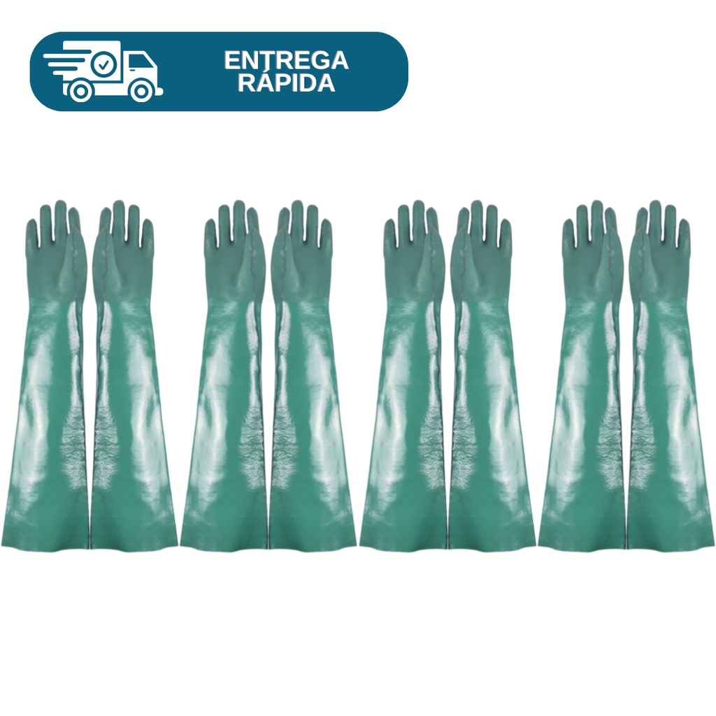 Kit 4 Prs Luva De PVC Cano Longo 60cm Verde Forrada Palma Áspera Resistente Proteção Química Esgoto Epi