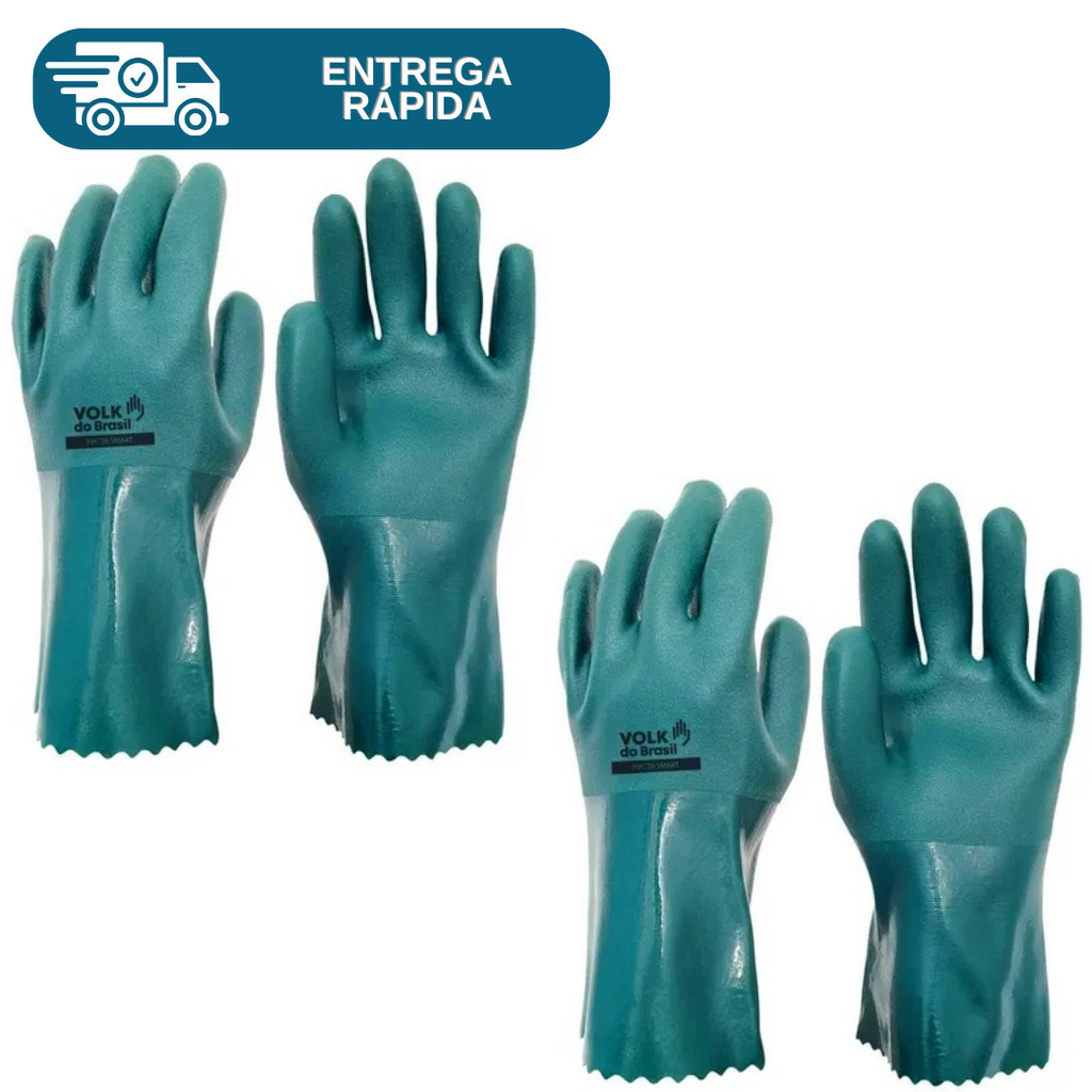 Kit 2 Prs Luva De PVC 26cm Verde Cano Curto Forrada Palma Áspera Resistente Proteção Química Esgoto Epi Volk