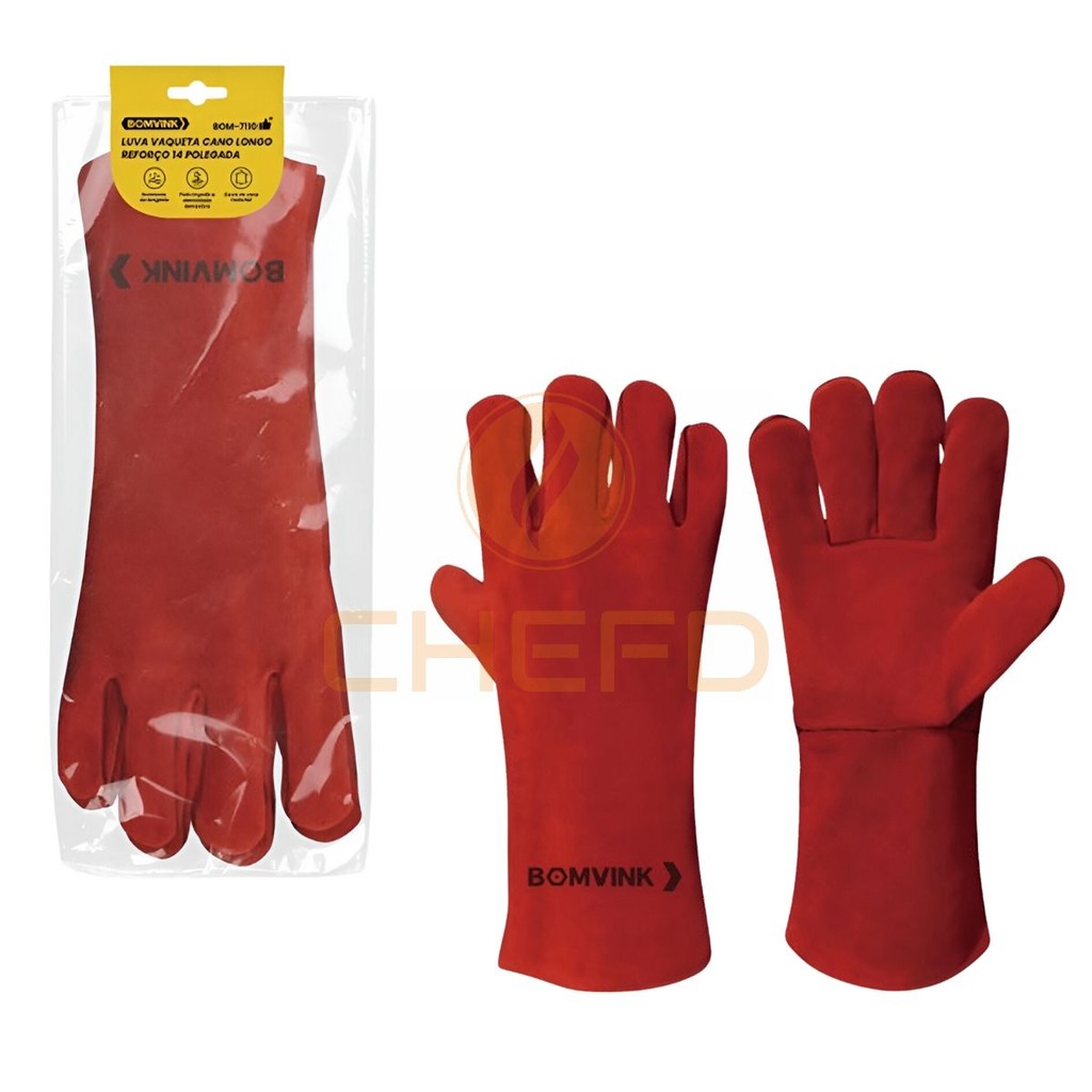 Luva Couro De Raspa Punho 20cms Cano Longo Proteção Segurança Para Pedreiro Soldador Epi