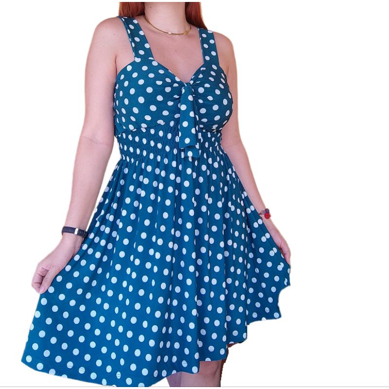 Vestido Feminino Rodado de Bolinha Poá com Lastex