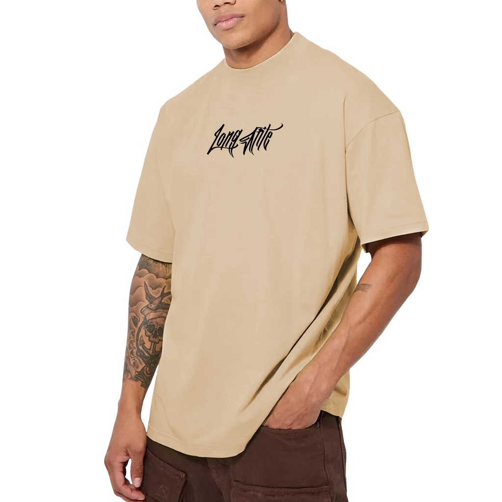 Camiseta Long Nite Streetwear Trap Rap Oversized Underground Camisa Tattoo bege
