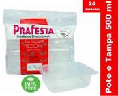 24 Potes 250ml/500ml Retangulares Descartáveis Com Tampa Para Freezer e Microondas Prafesta