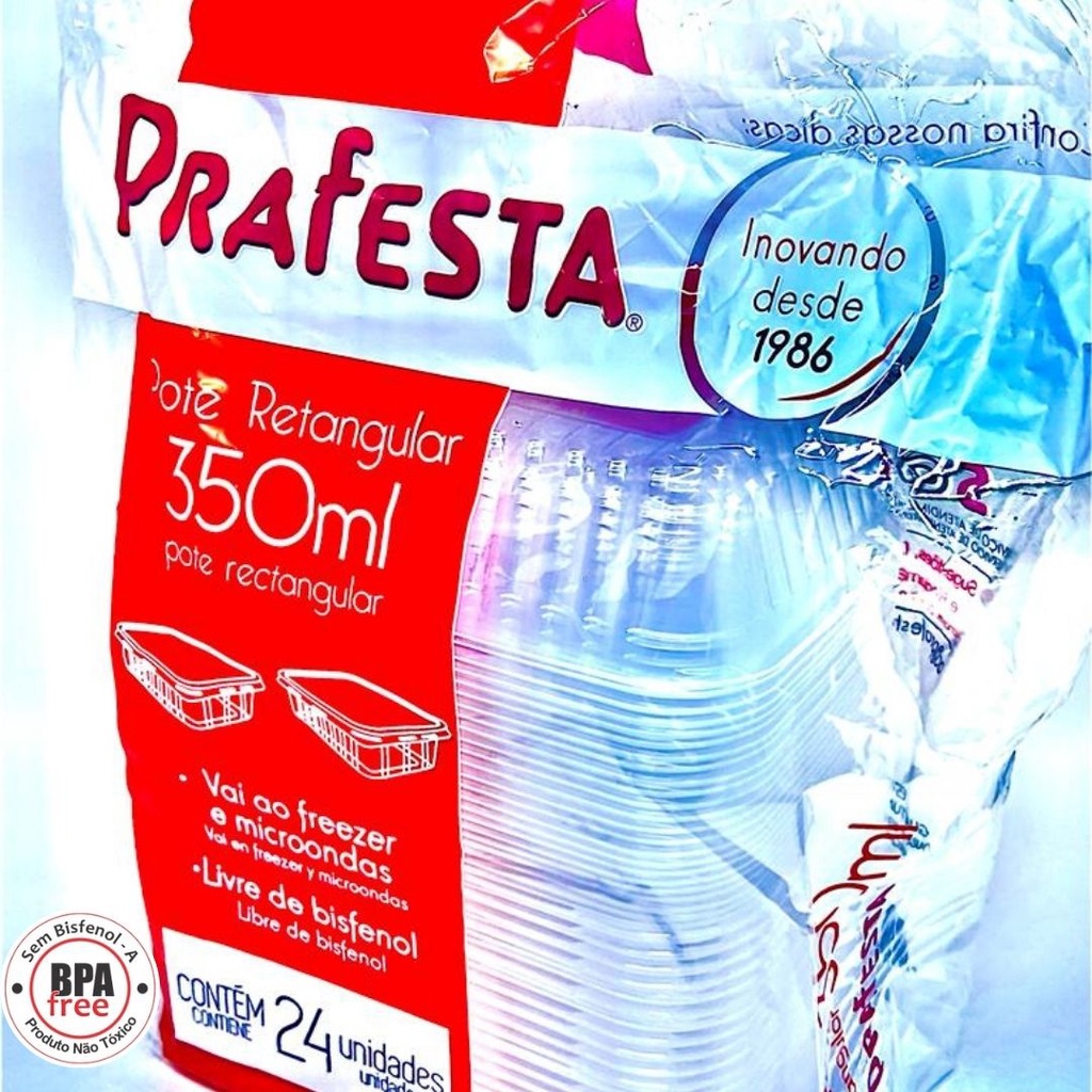 Pote Retangular 350ml Marmita Fit - Microondas/freezer 24 Unidades PraFesta/ MARMITA FITNESS /Potes retangulares com Tampa