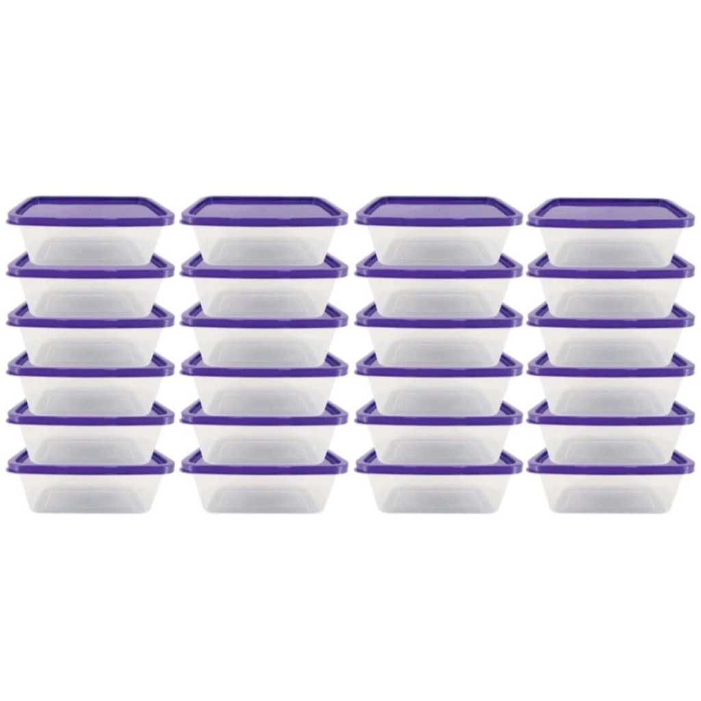 Kit potes Retangulares 24 Unidades 500ml Tampa Colorida BPA FREE Marmita Fitness Organizador de Alimentos Freezer micro-ondas