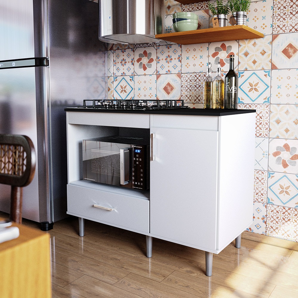 Balcão de Cozinha 1,05m Para Cooktop 5 Bocas 1 Nicho Com 1 Porta E Gaveta Turim Branco - Lojas Movelove