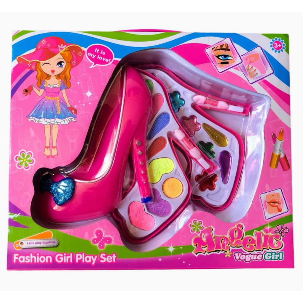 Kit Estojo De Maquiagem Infantil Sapato Rosa + Batom
