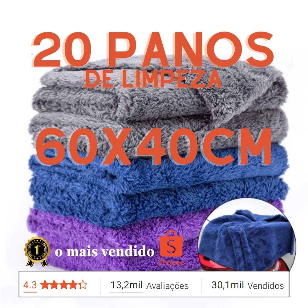 kit 20 Panos De Limpeza Microfibra Multiuso Casa Carro Não Arranha - Lavagem e Ceras Cuidados Automotivos