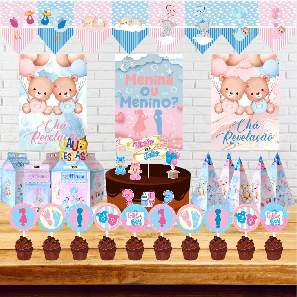 Kit Festa Pronta Chá Revelação + lembrancinha