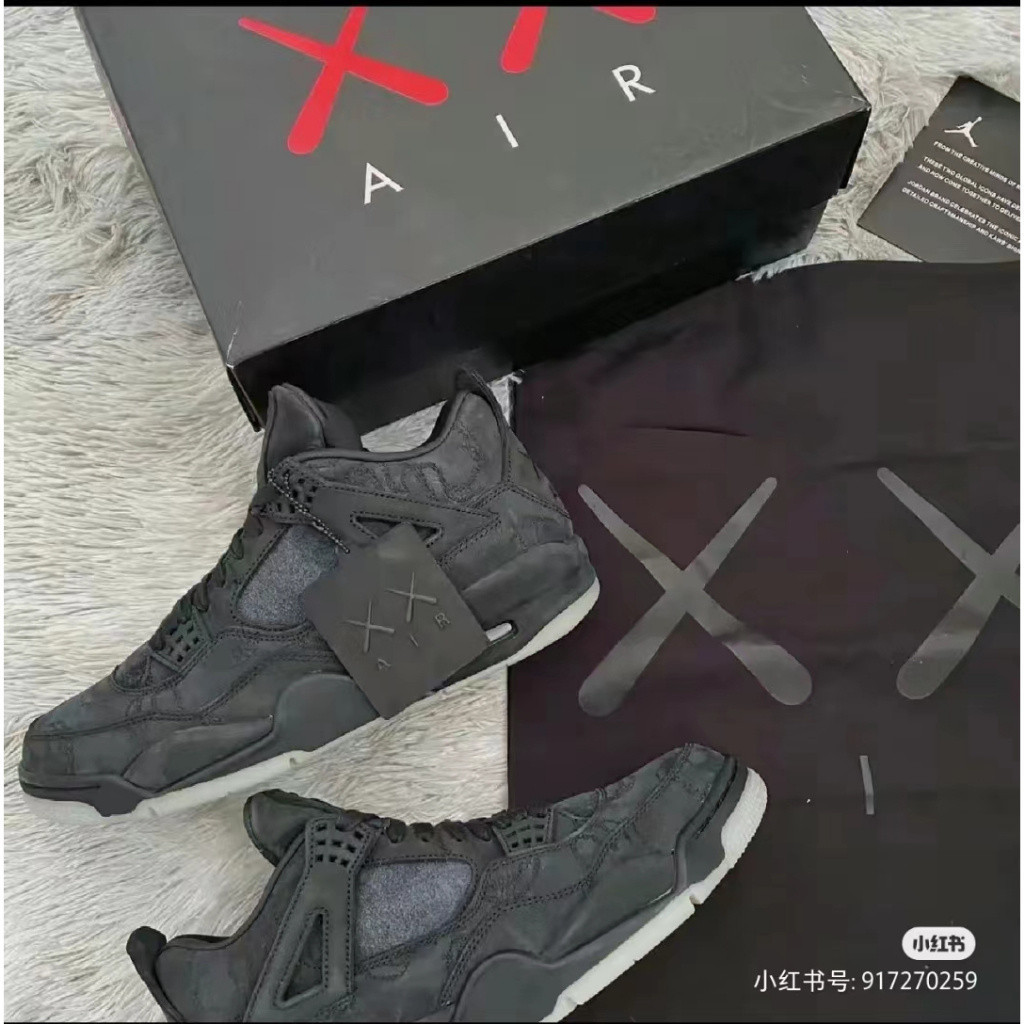 LFHV Estoque Pronto Kaws x Air Jordan 4 Retro aj4 Men's Black Absorção De Choque E Sapatos De Basquetebol Antiderrapantes De Gangue Média
