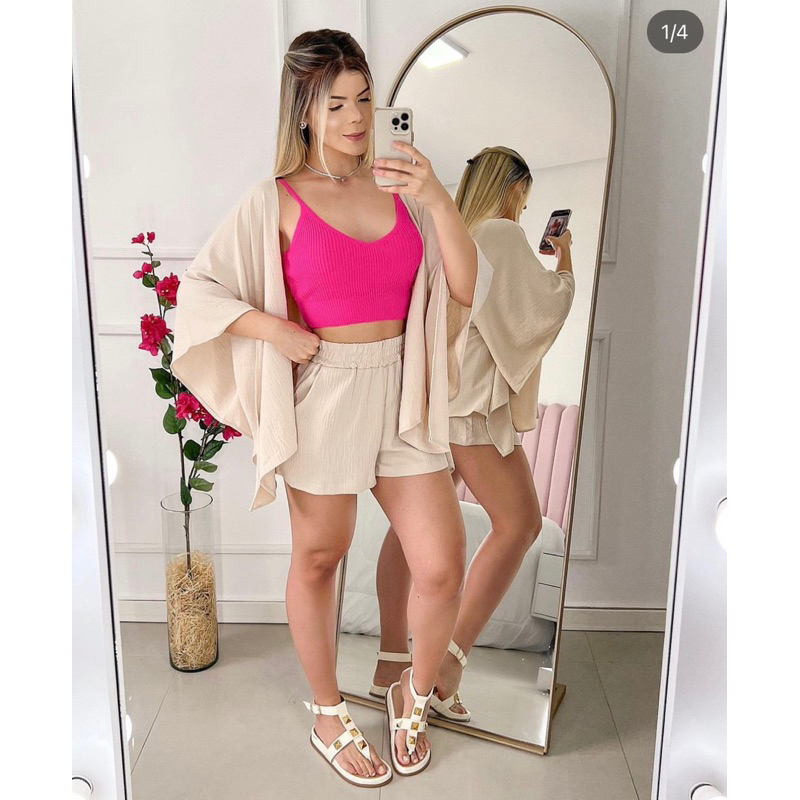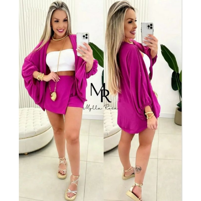 Conjunto feminino kimono + Short 2 peças Verão Moda Blogueira