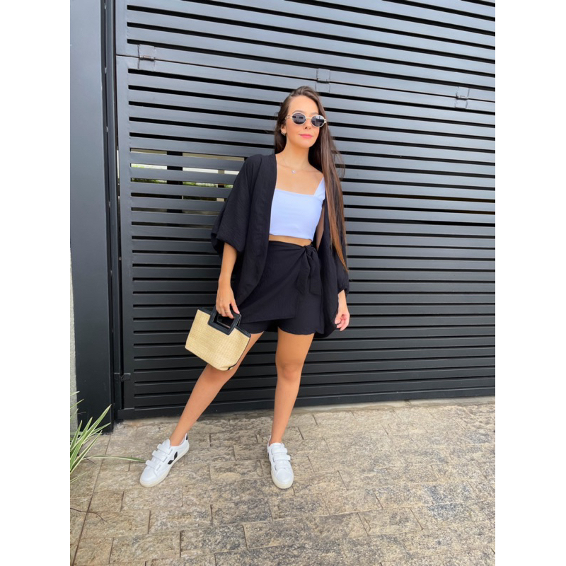 Conjunto Kimono Short saia preto conjunto feminino moda blogueira elegante