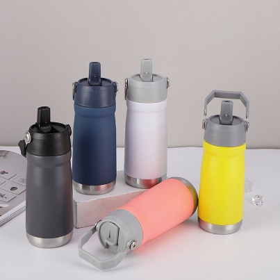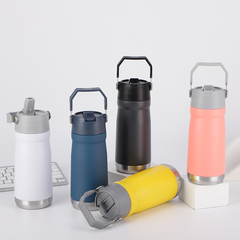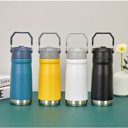 Garrafa Termica de Àgua 650 ML Em Inox Bico Flip com Canudo Tampa com Alça Squeeze Academia Carro