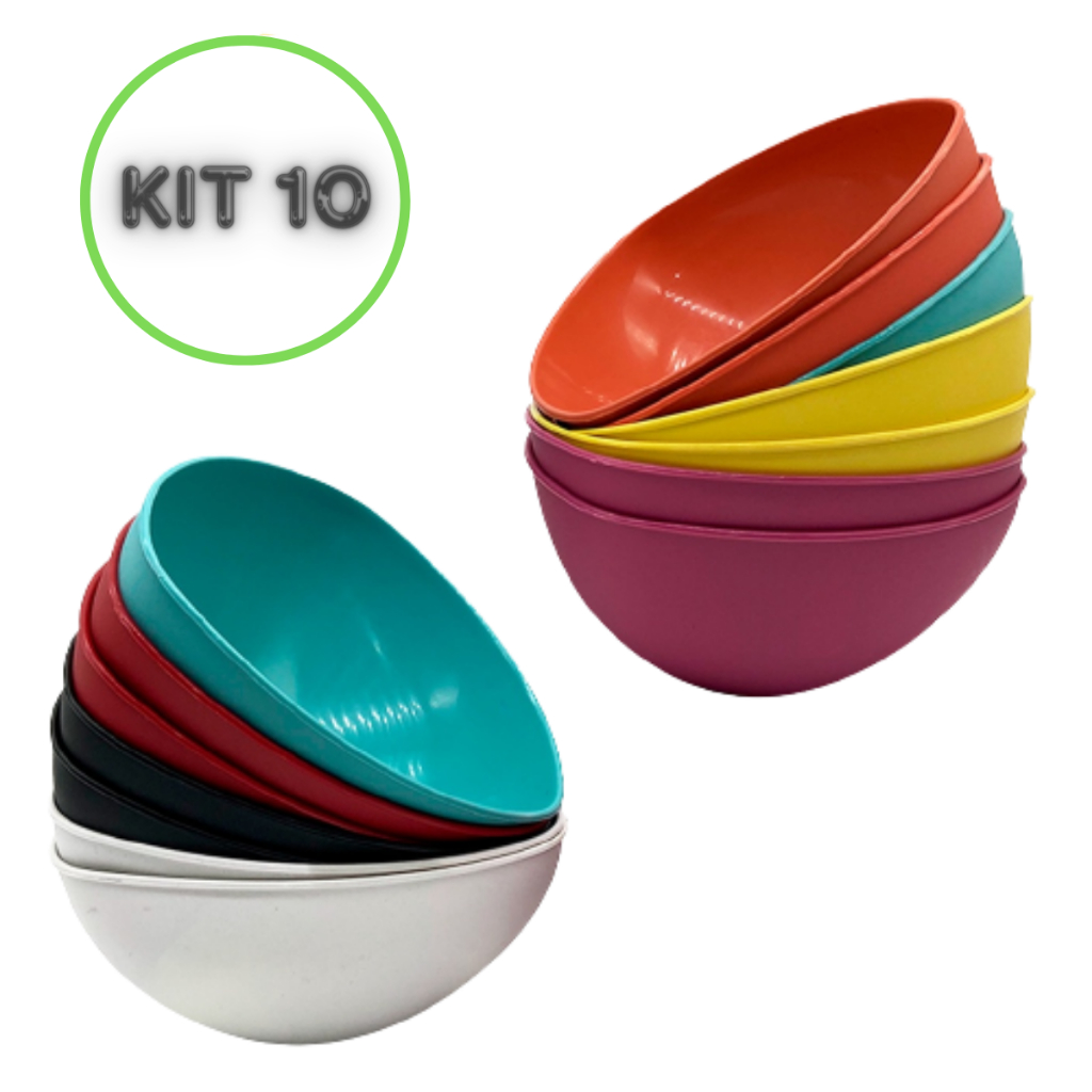 Jogo Kit Com 10 Peças 420ml Tigela Pote De Plastico Melamina Cumbuca Caldos Sopa Sobremesa Bowl