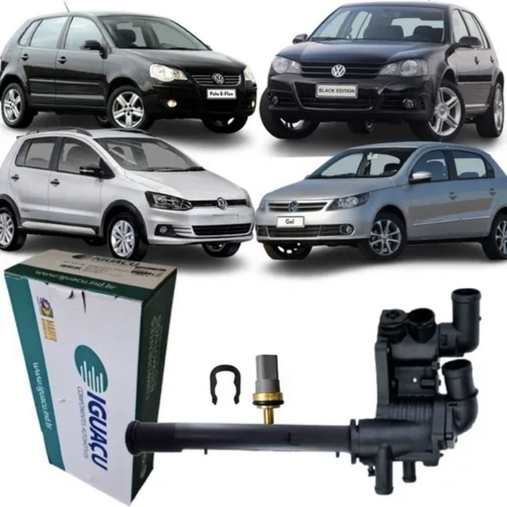 Cavalete De Agua Distribuição Válvula Termostática Completo Volkswagen Fox Polo Gol Golf Voyage Saveiro Crossfox G5 G6