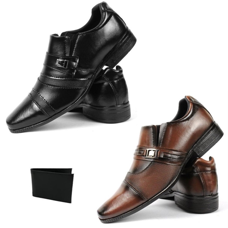 Kit 2 Sapato Social Couro Confortável Casual Masculino Preço Baixo + Carteira