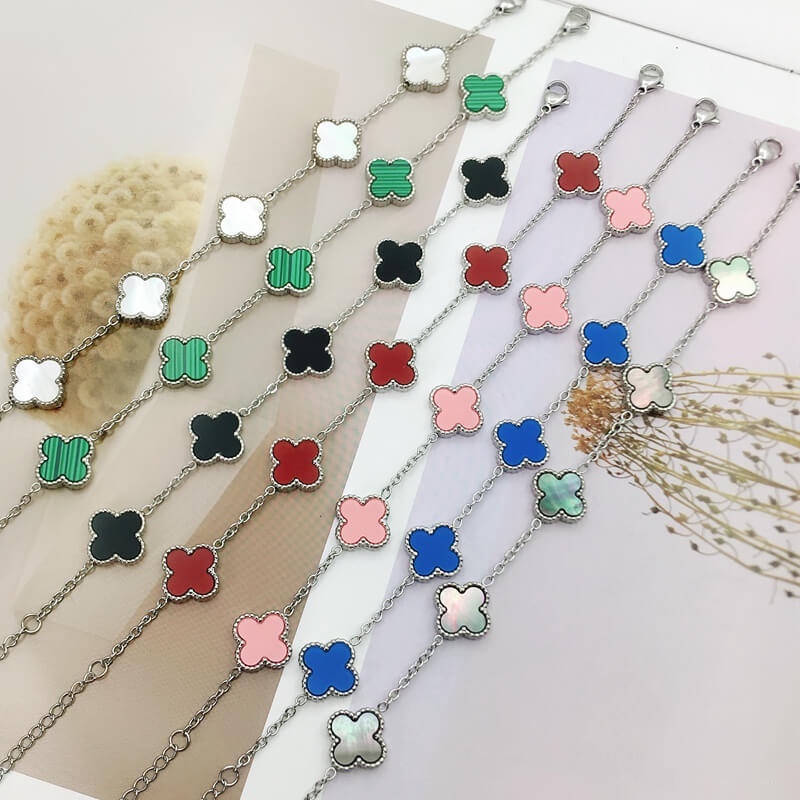 Clássico Da Moda De Luxo Pulseira De Quatro Folhas De Trevo De Aço Inoxidável De Titânio Fêmea Concha Tiktok popular Por Atacado