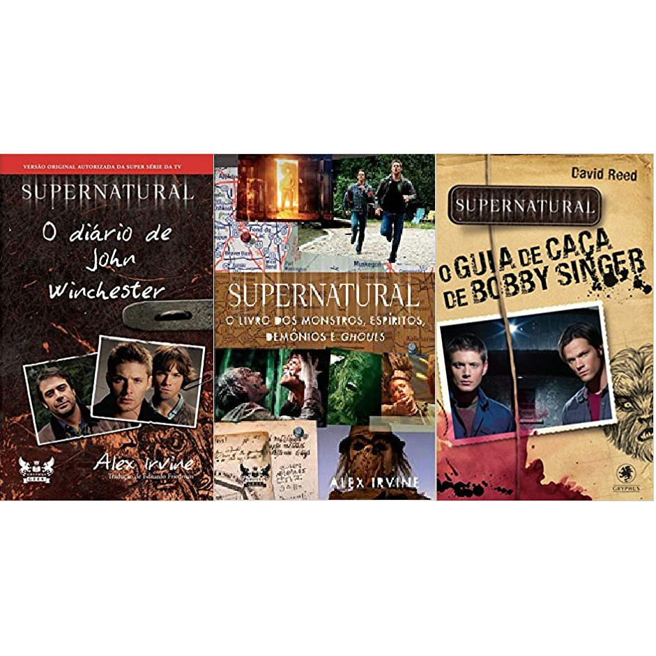 KIT 3 LIVROS SUPERNATURAL O diário de John Winchester + livro dos monstros, espíritos + Guia de Caça de Bobby Singer