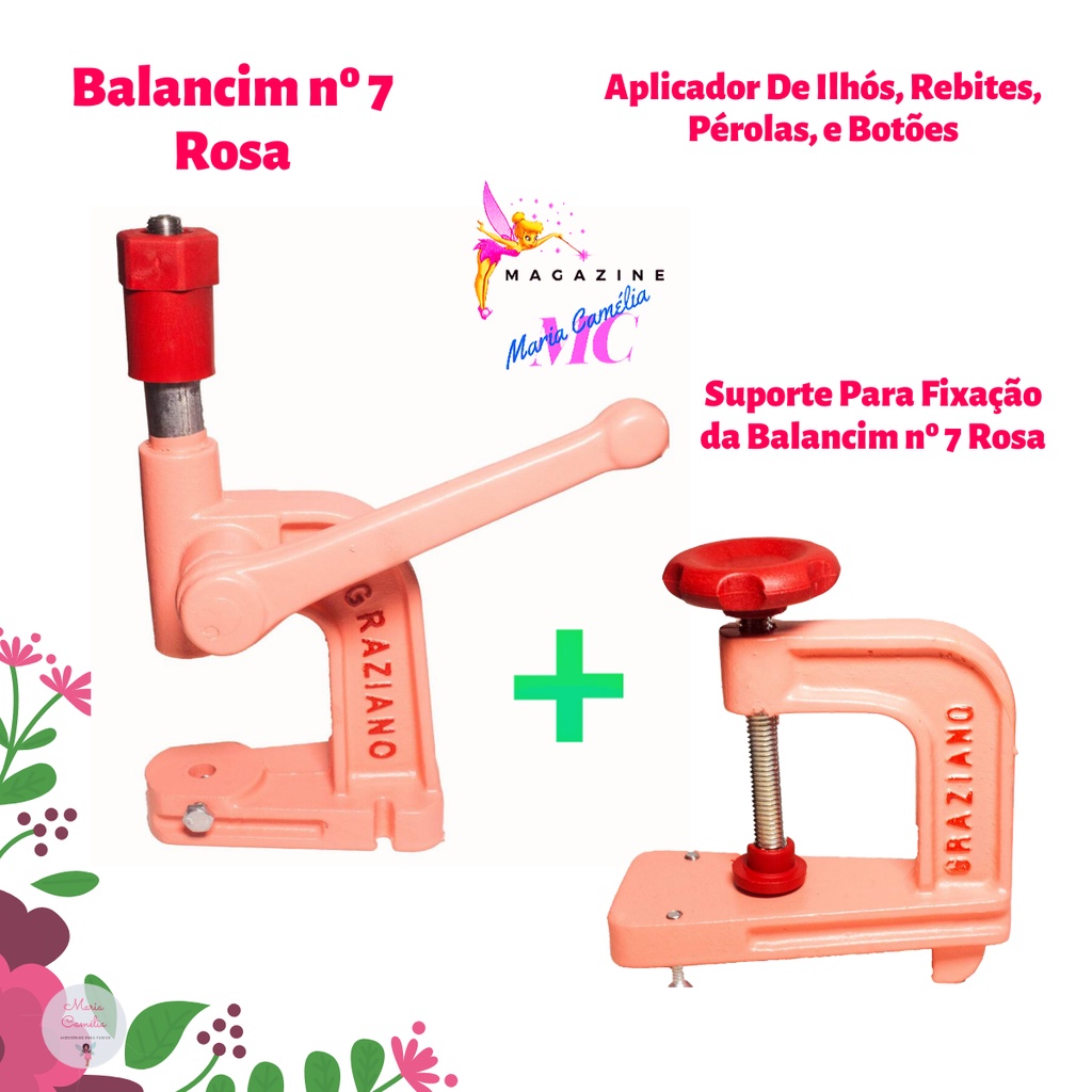 Máquina Balancim Prensa Manual para Pregar Botão de Pressão Ilhós Rebites Pérolas Forrar Botões Bombe com Suporte de Fixação Cor Rosa Nº 7