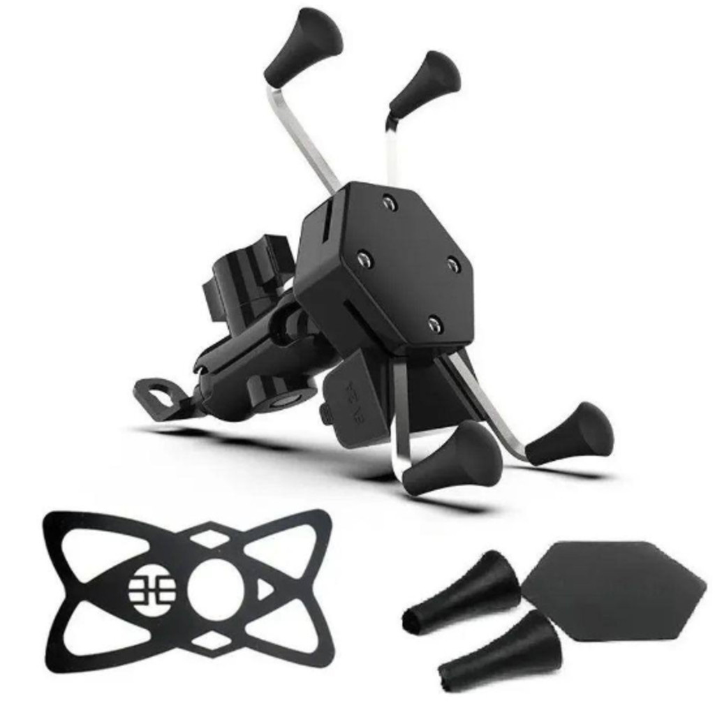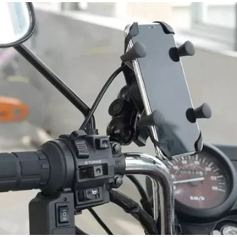 Suporte de Celular com Carregador 2.4a USB Garra para Moto Fixação no Retrovisor ou Parafuso do Guidão