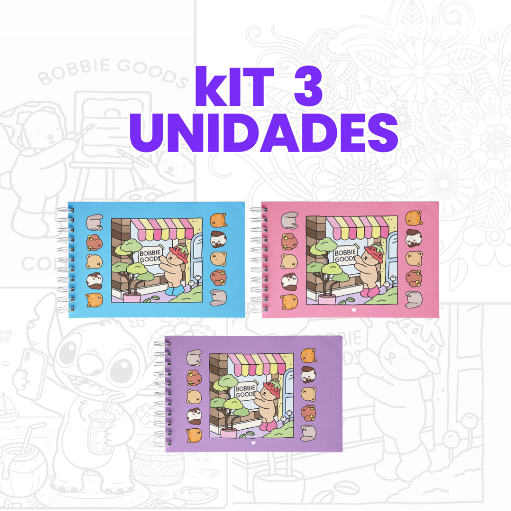Kit 3 livros de colorir Bobbie Goods - Rosa -Azul e Lilás - holográfico capa-dura 60 folhas