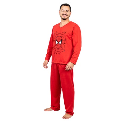 Pijama Adulto Longo Inverno Pai Super Herói Homem Aranha