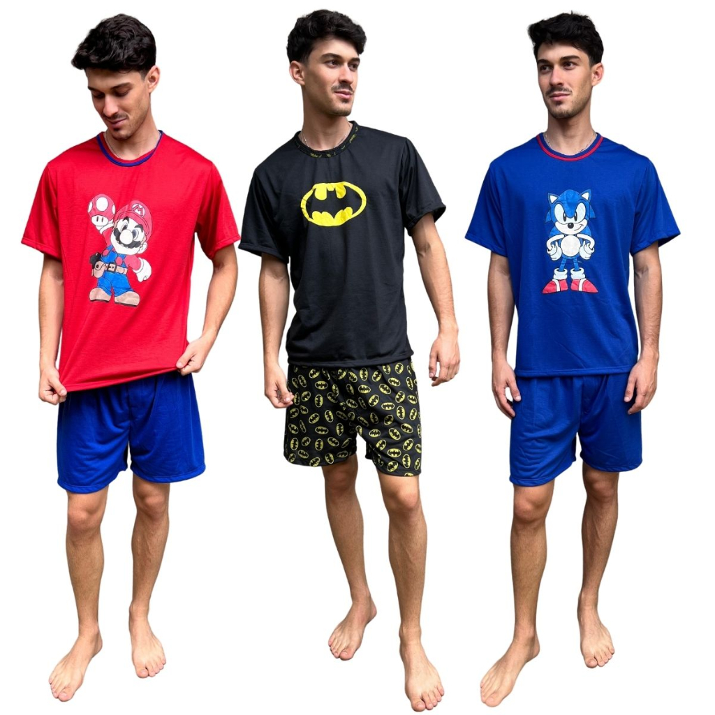 Pijama Adulto Masculino Meia Manga / Super Heróis / Roupa de Dormir / Pijama Masculino