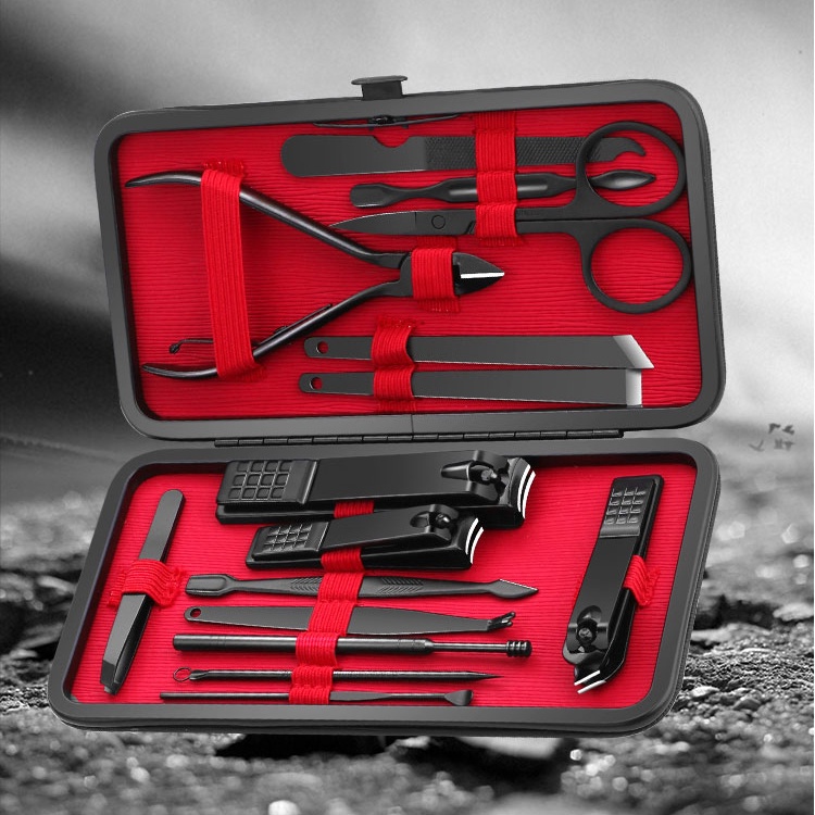 7/10/12/15/18/20 Pcs Cortador De Unhas De Aço Inoxidável Trimmer Earpick Grooming Kit Manicure Pedicure Tesoura Pinça Conjunto De Ferramentas Com Caixa De Viagem De Couro Preto