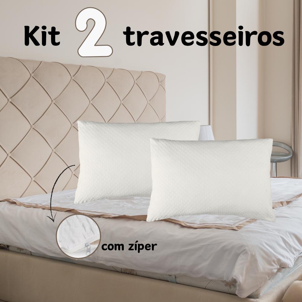 Kit 2 Travesseiro Nasa Latex + Capa Protetora Travesseiros 50cmx70cm 180 Fios Impermeavel Liso