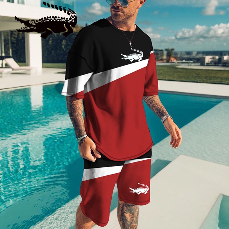 Summer New Men's Casual Shorts Manga Curta Conjunto Crocodilo Estampa 3D Camiseta Harajuku Street Sports De