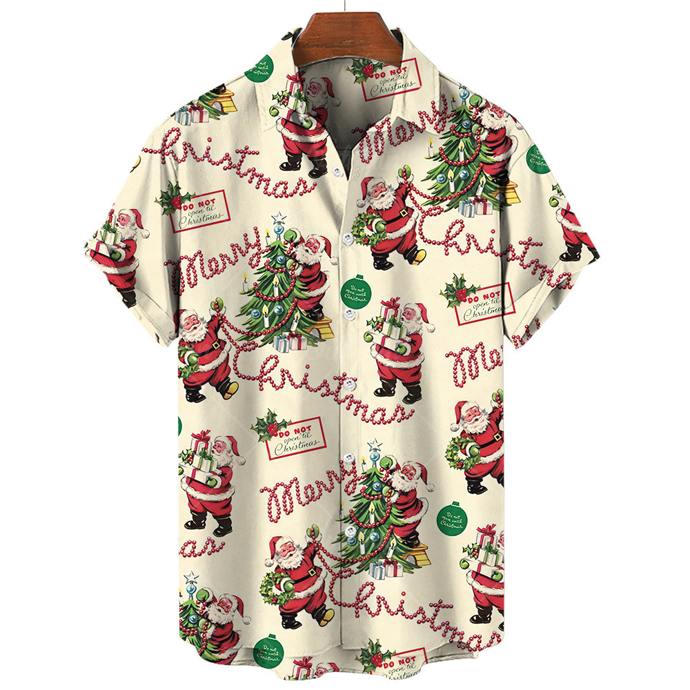 Casual Summer Men's Shirts Camisas De Verão Confortáveis Sino De Natal Macio Camisa Havaiana Impressa Na Neve Solta Tops