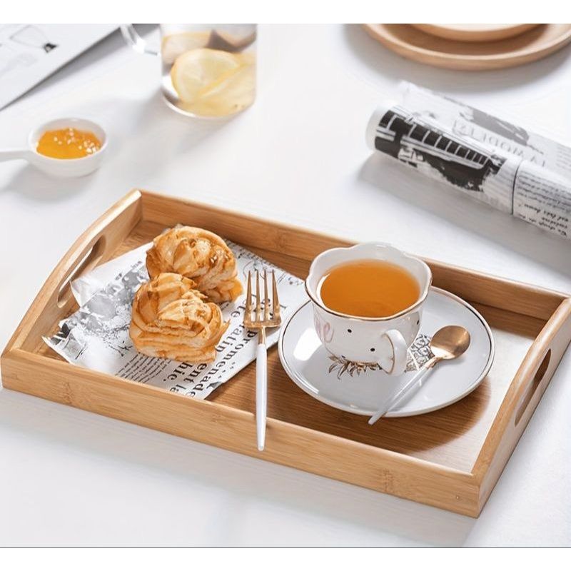 Bandeja Retangular com Alça Grande Sense Bandeja de Bambu Bandeija Café da Manhã Cantinho do Café De