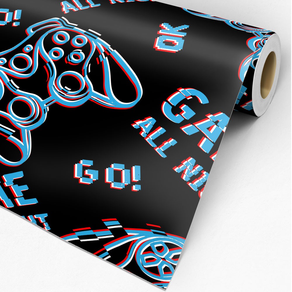 Papel De Parede Quarto Gamer Neon Azul E Fundo Preto Decoração Gamer Infantil Adulto