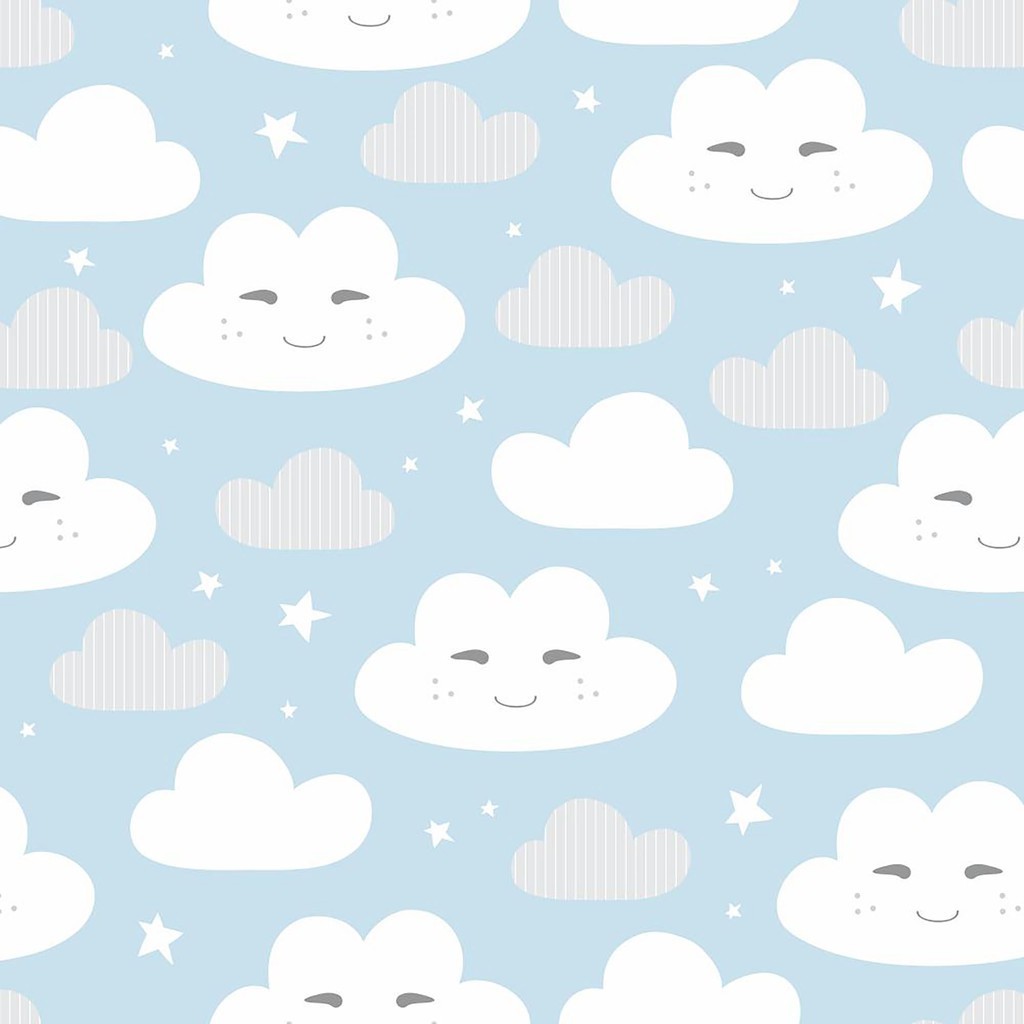 Papel De Parede Nuvens Azul e Cinza Quarto Infantil Adesivo Lavavel Anti Mofo