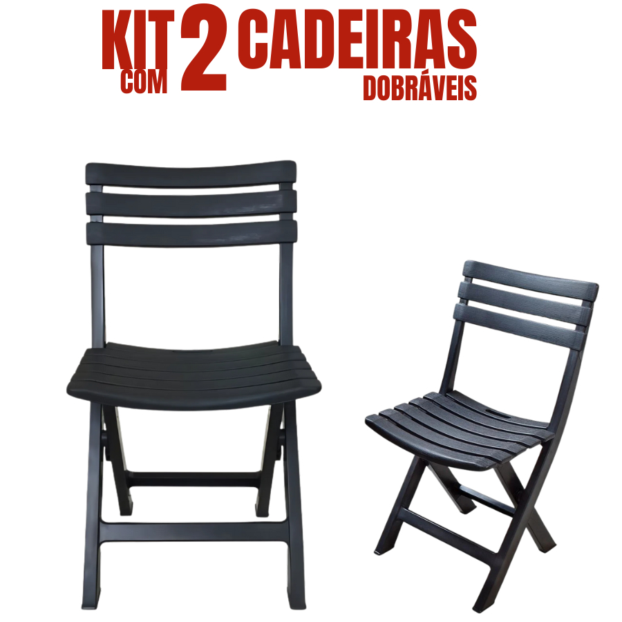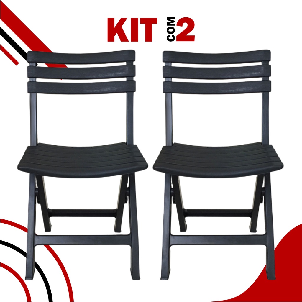 Kit 2 Cadeiras Dobráveis Área De Lazer Sustentável Preta Suporta até 110kg