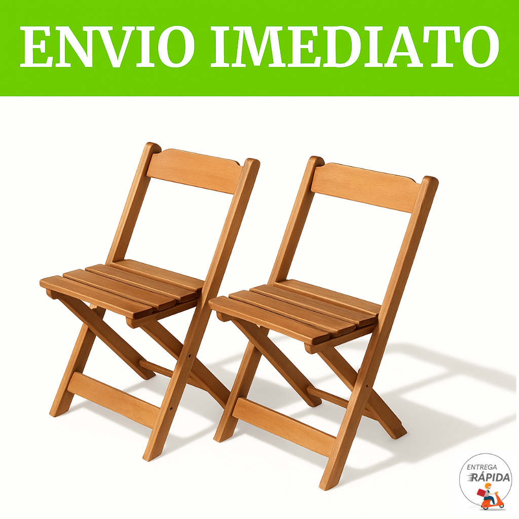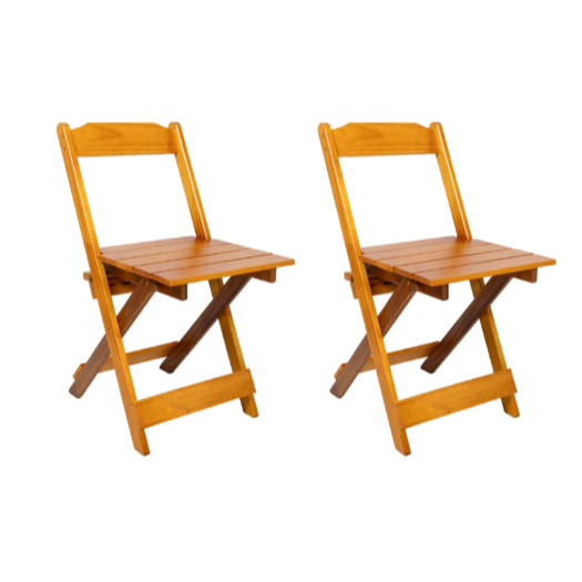Kit 2 Cadeiras Dobraveis De Madeira de Lei Natural Bar Lanchonete Restaurante Área Externa Churrasco