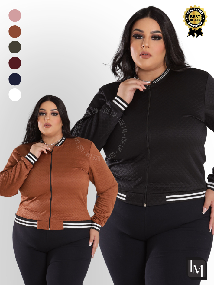 Jaqueta Bomber Plus Size Feminina Blusa Ziper Inverno Curve