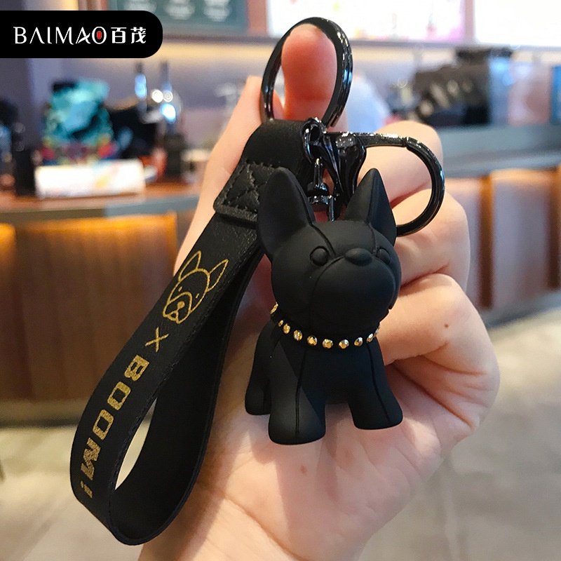 Desenho Animado Porta-Chaves Cão De Luta Francês Feminino Fofo Bulldog Criativo Carro Pingente Bolsa Escolar Ornamento