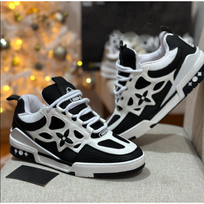 Tênis Skate LV Vuitton Sneaker Grife Cadarço Duplo Couro de Luxo Confortável Leve Masculino Feminino Queima de Estoque !
